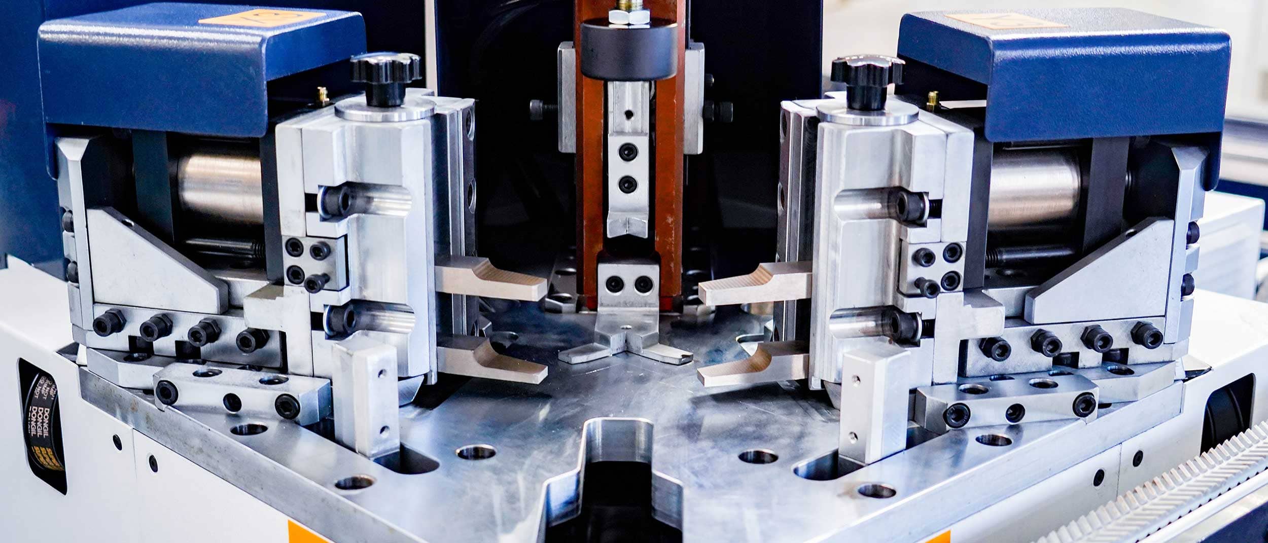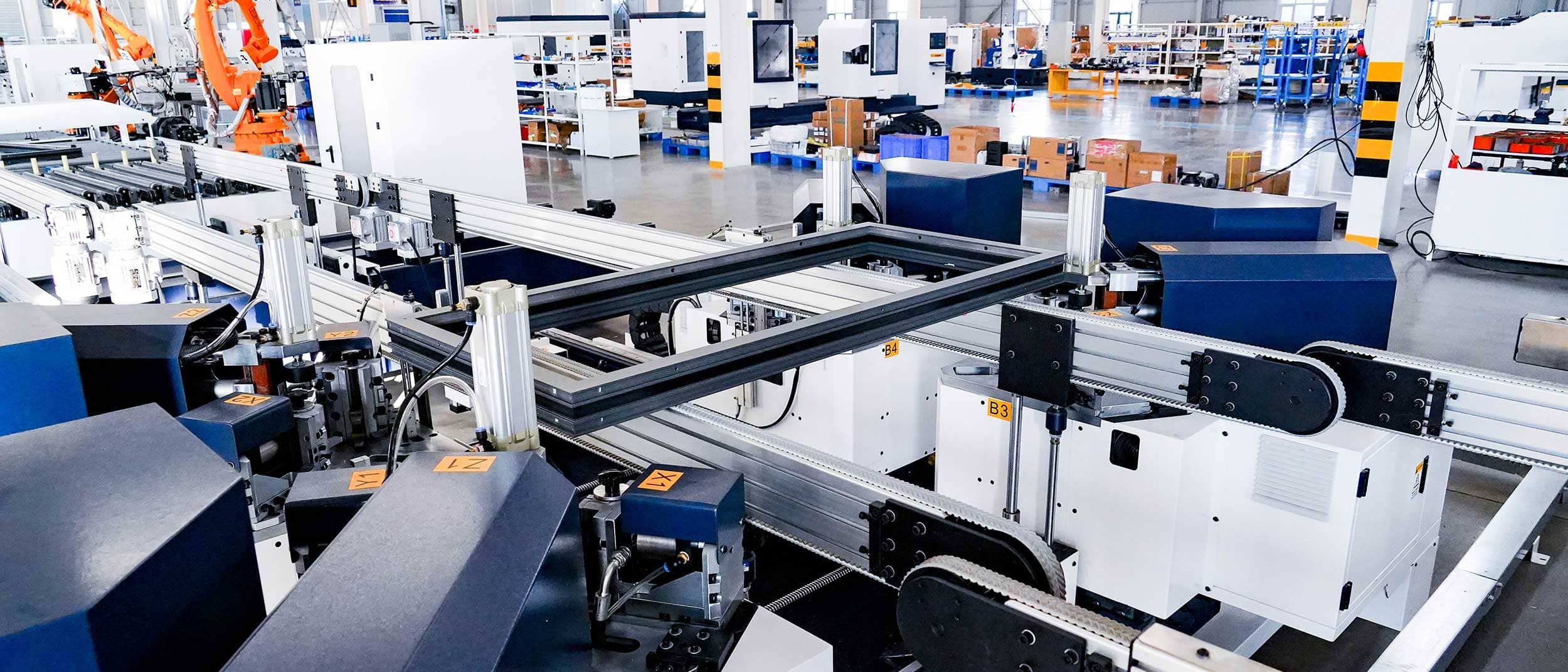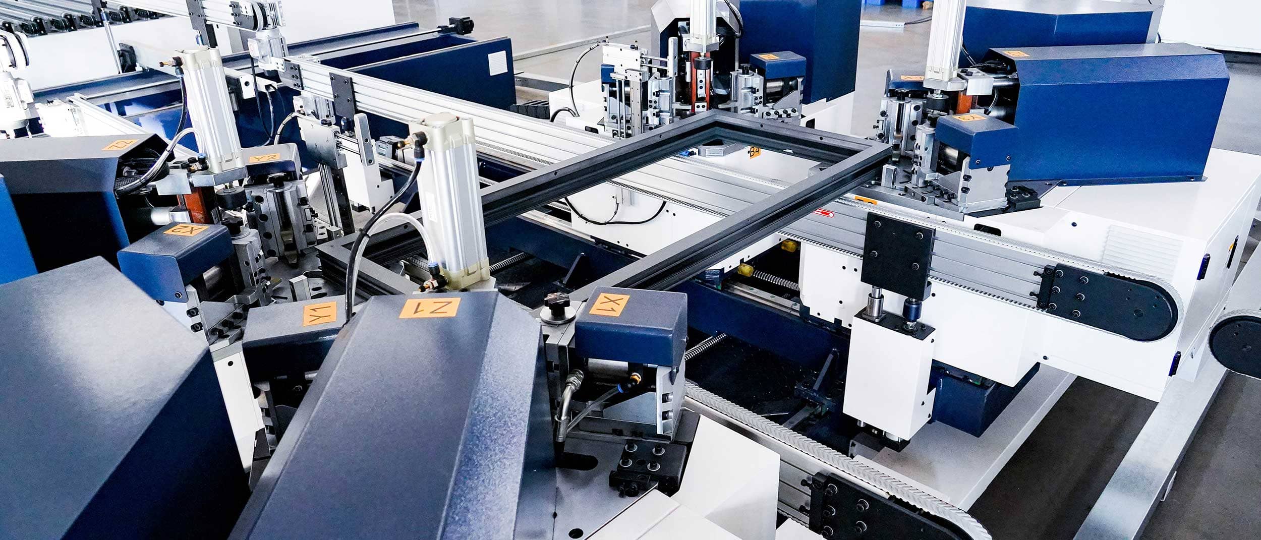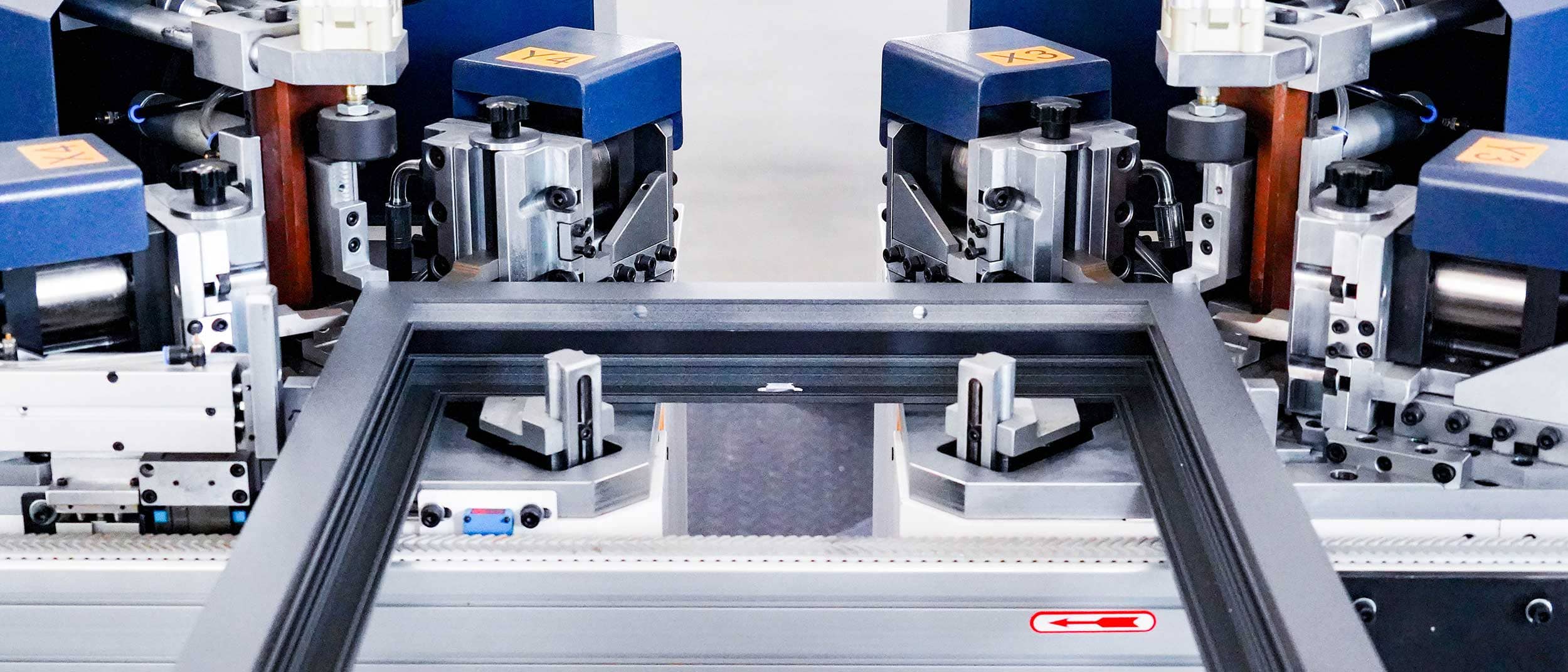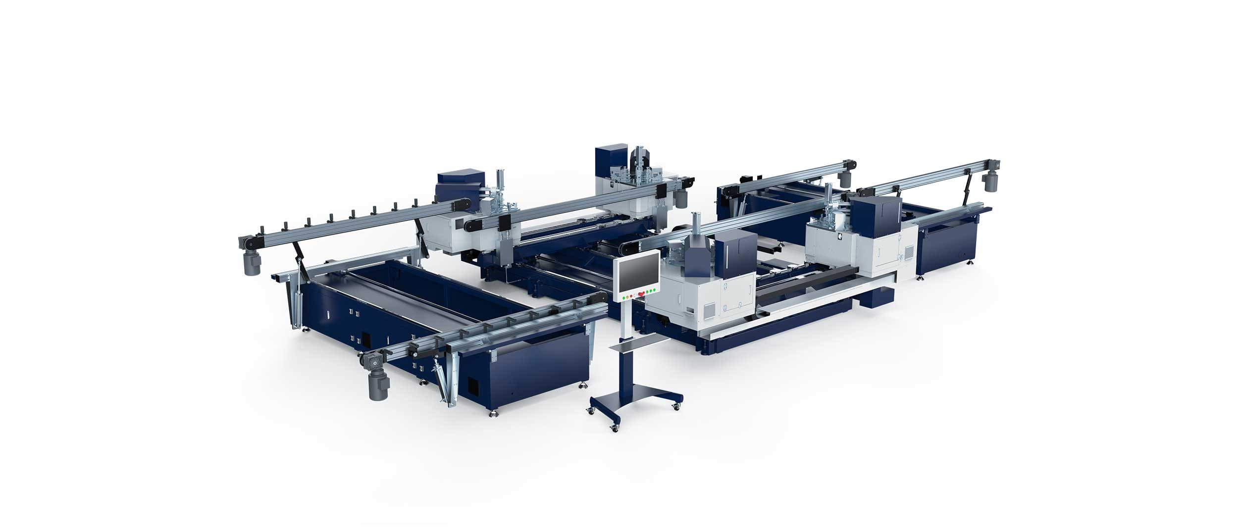Barite 150 – La ligne de production de sertissage d'angle intelligente à 4 têtes pour portes et fenêtres en aluminium peut réaliser le poinçonnage et le rivetage des taquets d'angle des quatre coins en une seule opération.