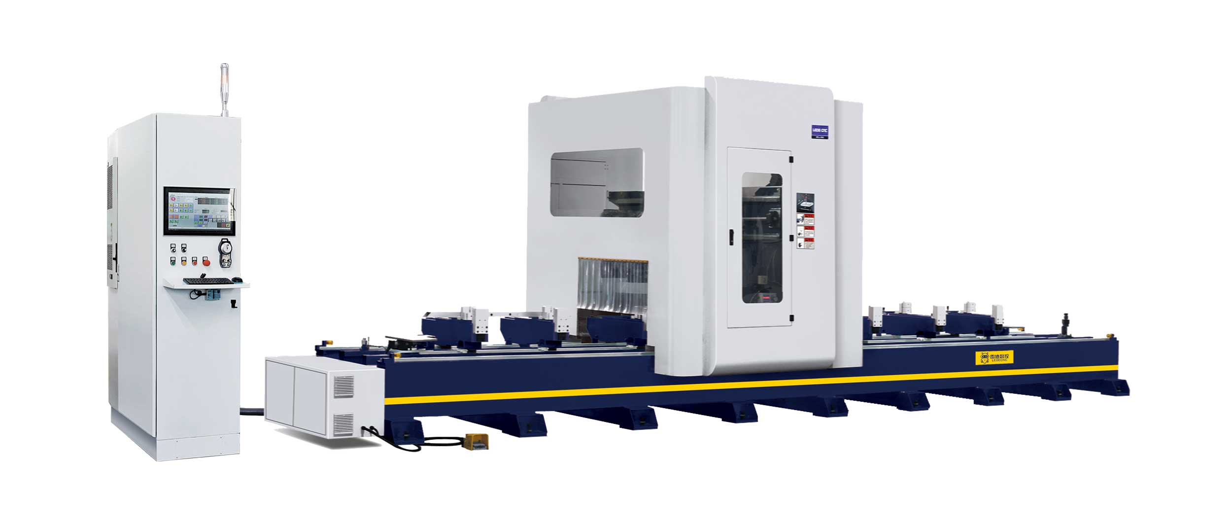 Un centre de découpe et de fraisage haute performance pour les grands profilés en aluminium et en alliage léger de murs-rideaux, conçu pour le fraisage, le perçage et la découpe des têtes et des extrémités