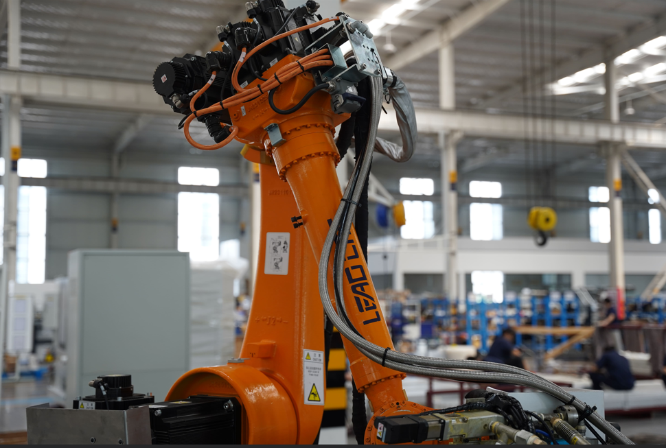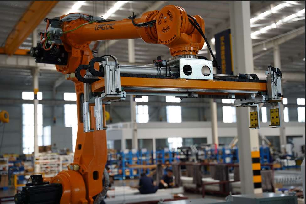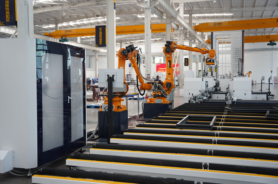 Haute précision : injection de colle pour différents types de cadres de portes et fenêtres en aluminium, les robots doubles à six axes coopèrent pour l'injection automatique de colle, capables d'injecter de la colle à différentes positions sur les côtés supérieur et inférieur